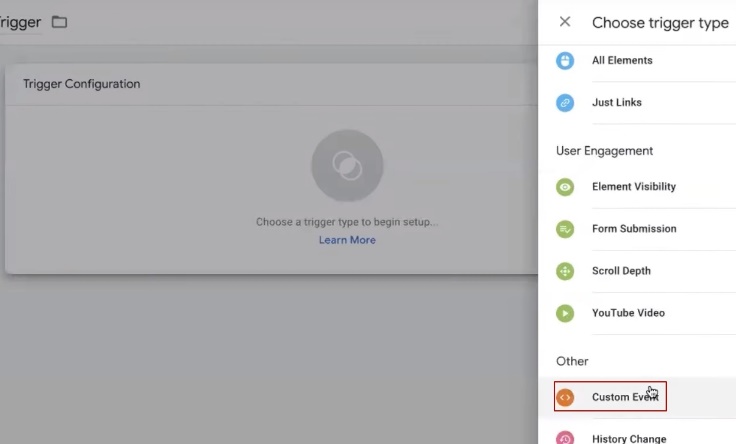 If you are worried about whether everything is transmitted correctly, click the plus sign, select the trigger configuration, Custom Label.