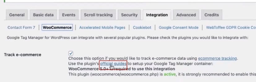 Next, go back to the “Integration” block, go here to WooCommerce and follow the Official Guide link.