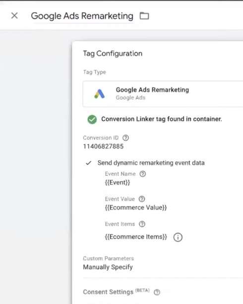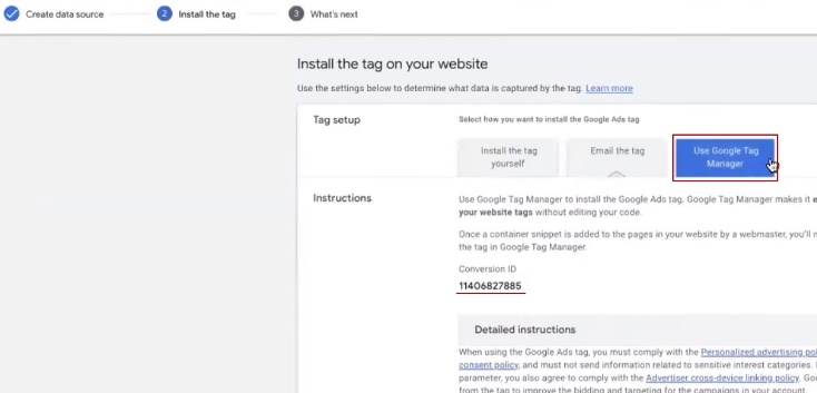 Select Tag Manager. There will only be a Conversion ID. What do you need to do to set up dynamic remarketing?