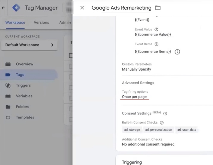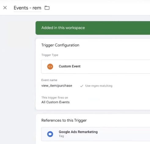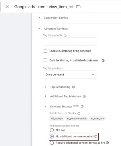 Close it. Pick it. Where’s remarketing? Save, reload. The only thing I would recommend to do is to correct this thing. In the saved “Once per page” so that View_item_list and others are fixed less. It is better to pass less data than more.