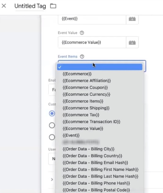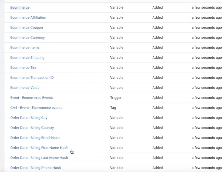 Just some of it it’s simple, just ecommerce.transaction_id. And maybe something would be more complex, orderData.customer.billing.phone_hash. The complexity would be that Ctrl+C Ctrl+V would be done several times. And there’s 18 of them. That’s one complication.