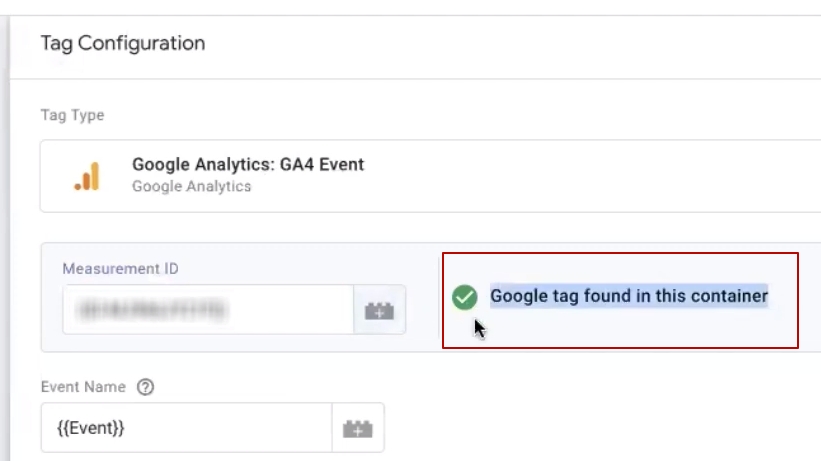 Call it whatever you want, I’ll leave the number here. Next, the “Google tag found in this container” checkbox should be highlighted.