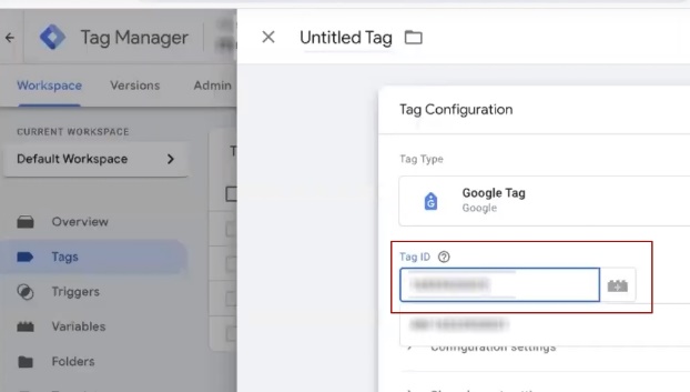 You need to do for this – first of all copy this numeric letter designation – the tag manager ID code.