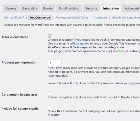 Next, go to the Integration block, go to the WooCommerce block and set the following settings: first, “track e-commerce” must be checked. For the sake of what with all this fuss and without it nothing much will work. Now let’s go through the plugin settings, then I’ll tell you what we’ll come back to.