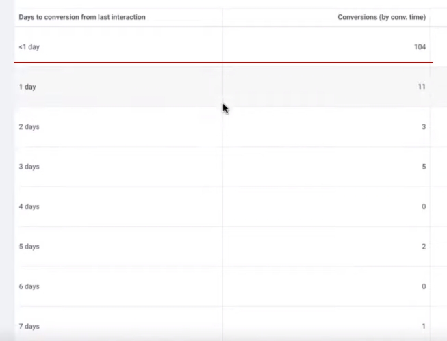 There are 104 conversions that were completed in the first 24 hours. Nine conversions were completed in more than 12 days. On average I take 30 days. Analysis always. Ideally take 7 days. 7 days usually does not show relevant analytics. You can see the real number of conversions for yesterday only within 72 hours. Google will change, recalculate, etc.