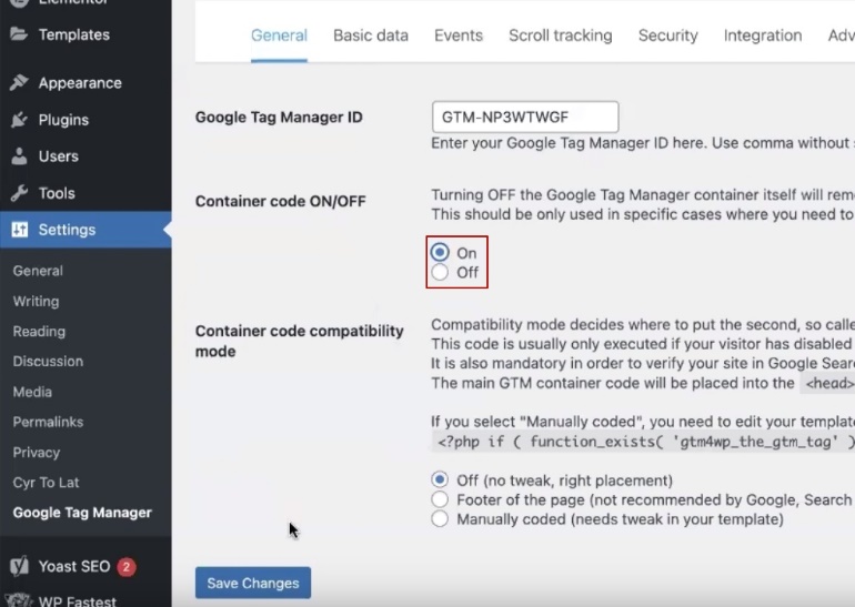 Installing the Google Tag Manager plugin on WordPress