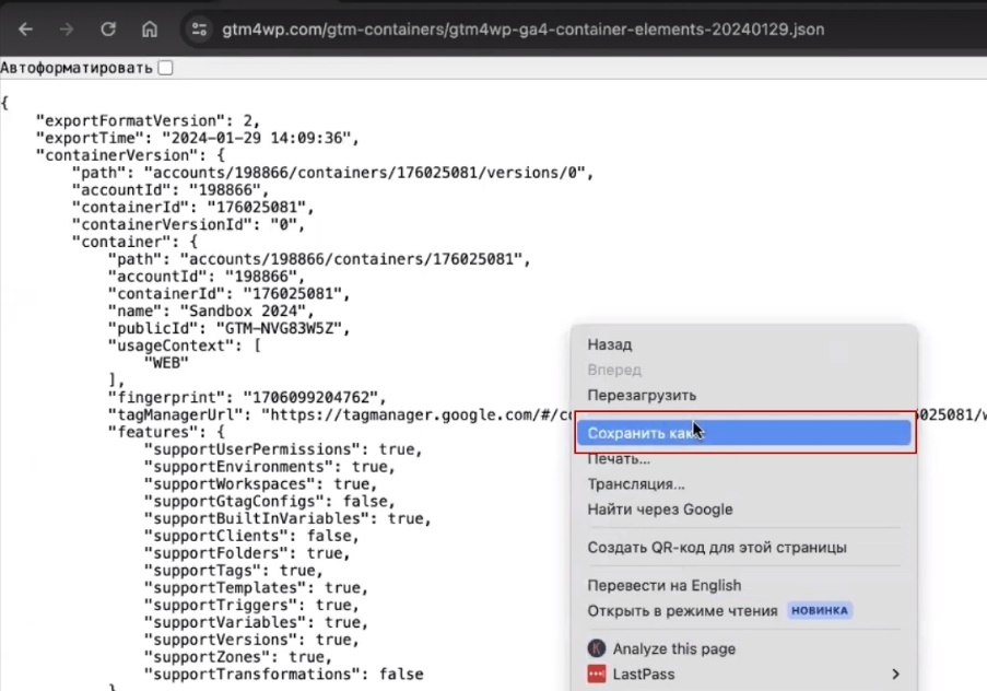 Export/import of ready-made Google Tag Manager container