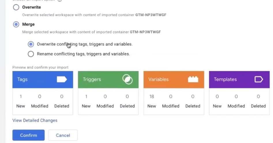 Choose the best option – overwrite the conflicting tags or rename them. I choose Overwrite. I confirm and see that it has already created a certain tag and a bunch of different variables. This will save a certain amount of time while we’re still tweaking.