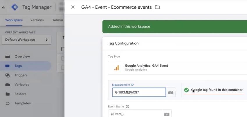 Next, go to this tag. Be sure to remove this thing and paste the code from the fourth analytics. I prefer to do this before the “Google Tag found in container” message appears. Save.