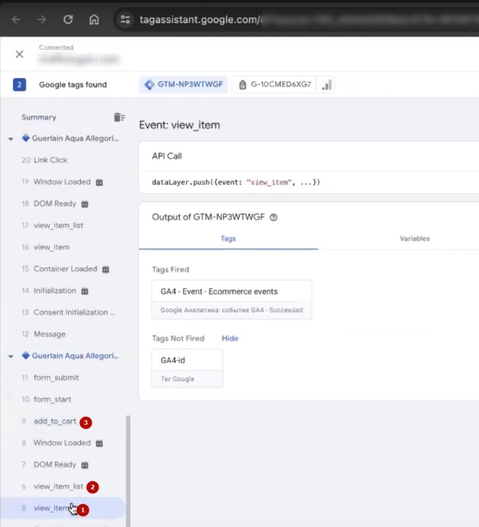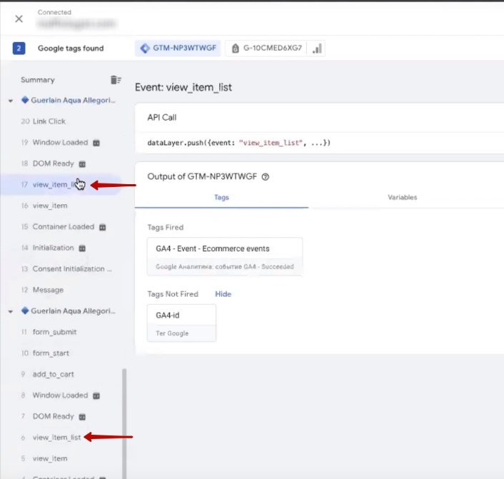 Let’s return to Google Tag Manager. The fourth analytics is done. Look, there is a nuance. After duplicating an event, there will be a lot of view_item or view_item_list – it depends on the website template you use, on the types of plugins you use for analytics. There are many of them. I recommend watching another video on how to avoid duplicate events. I will try to put it either in the video description or as a hint.