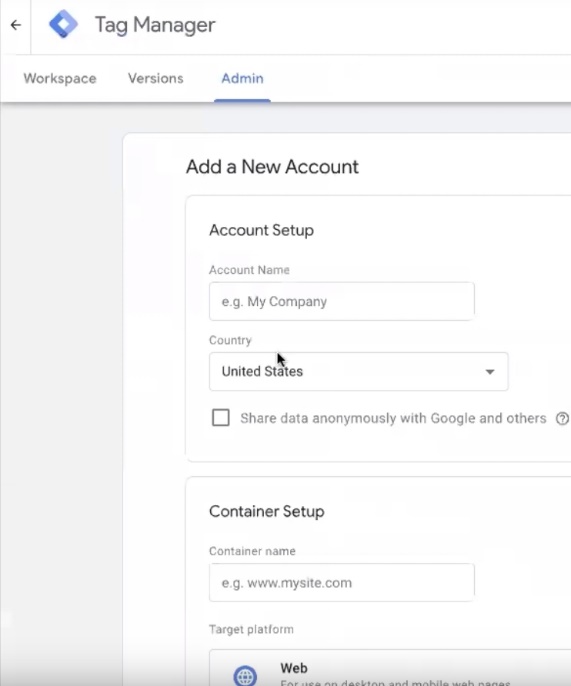 - Creating a Google Tag Manager account