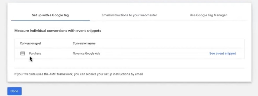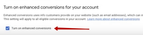 Нажимаем Done. Ставим эту галочку Turn on enhanced conversions — это включить расширенное следование расширенных конверсий. Я сейчас скажу, что с ними сделать. «Я согласен».