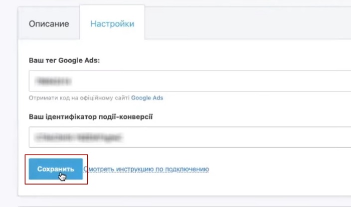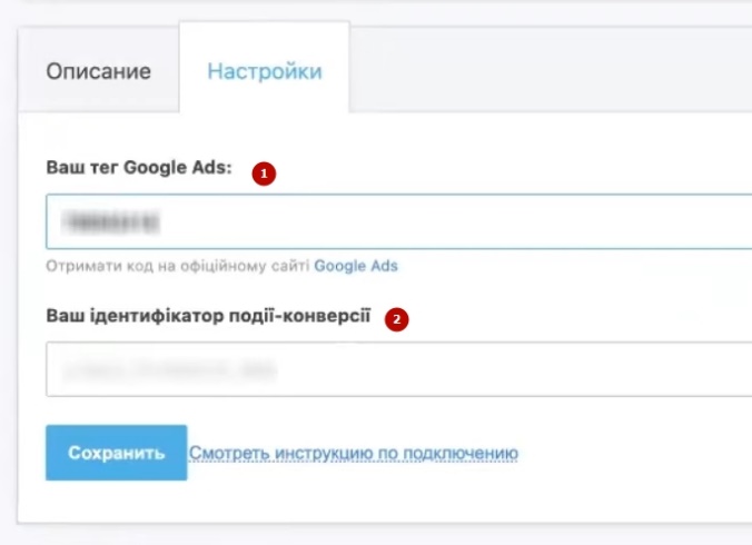 То есть я нахожу в этом Маркете вот, пожалуйста, у себя этот Google тег ремаркетинга Google Ads. Нажимаю на него. У меня открывается вот такое вот окошечко. Что мне нужно с этим всем поделать? У меня будет два активных поля. Тег Google Ads и идентификатор события конверсии. Если мы вернемся к предыдущему окошку, у нас есть conversion ID – ID конверсии. Вот он. 70 там цифровое значение.