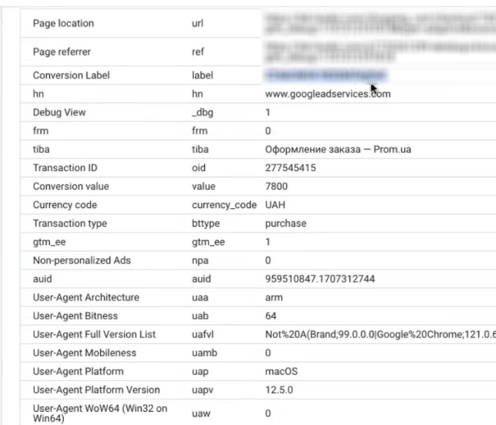 То есть этот purchase относится именно к Google Ads. Что мне нужно здесь обязательно проконтролировать? Во-первых, чтобы у меня пошло value, то есть сумма дохода, которую я хочу отправлять. Тип event-а, что он ушел, purchase и transaction ID. Вот у нас ID заказа – это базовый набор данных, который мы можем сюда отправлять, потому что у нас таким образом сформированный, сгенерированный код.