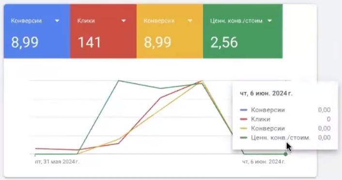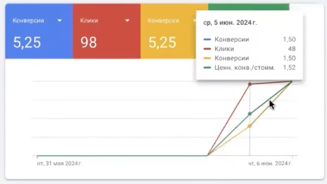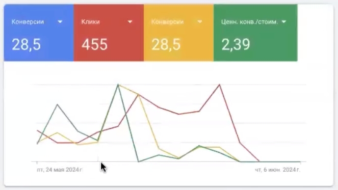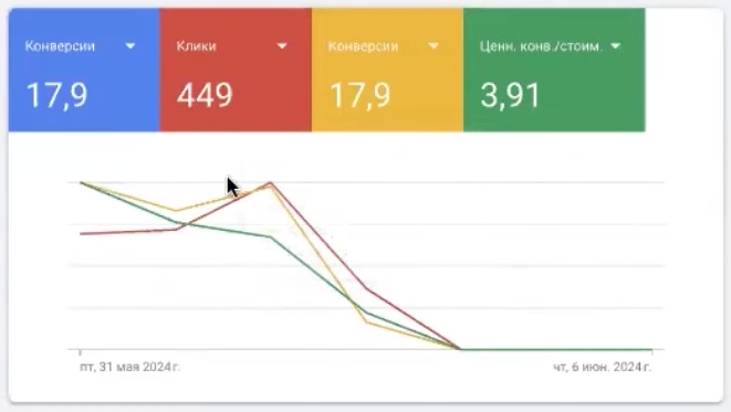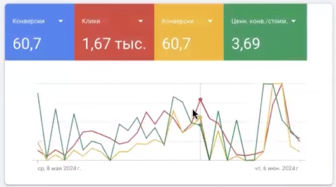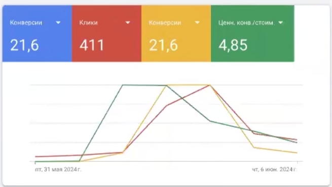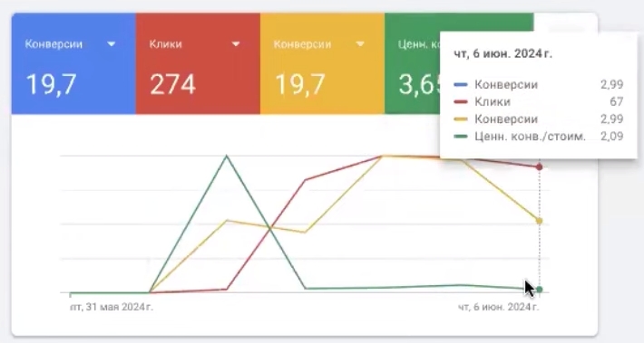 Ну, то есть, это не эти конверсии плюс конверсии из другой кампании, а при корректировке повышения рентабельности в этой основной рекламной кампании полностью стухла другая товарная позиция в другой кампании. То есть в топовой из-за повышения рентабельности она стухла, а в старой кампании, точнее в новой старой кампании, наоборот. Там осталась низкая рентабельность, она пошла на подъем.