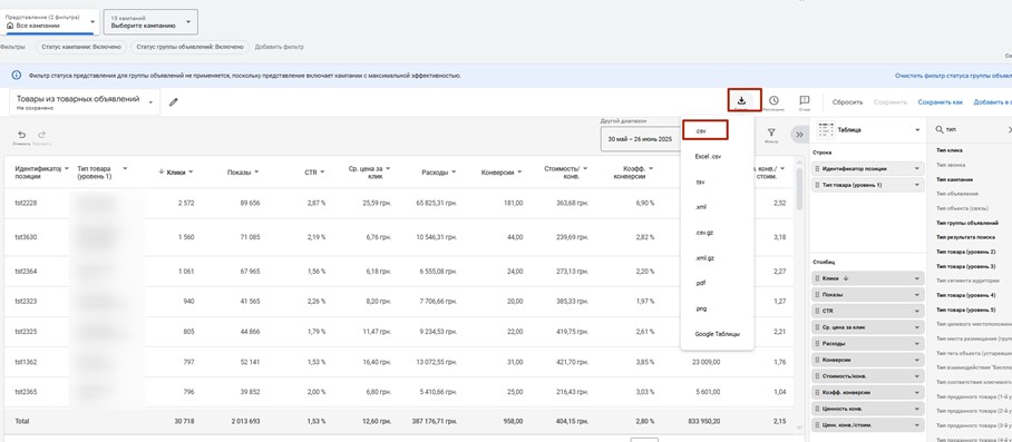 Инструкция по выгрузке информации о ваших товарах из рекламного кабинета Google Ads