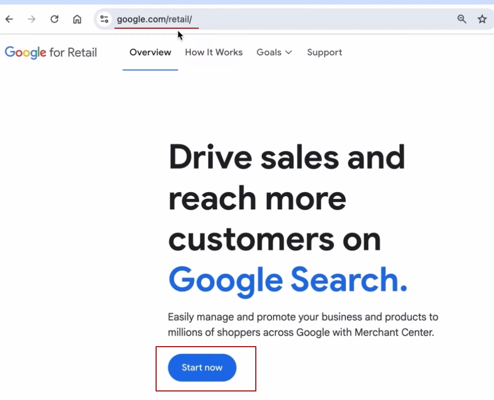 С чего мы с вами будем начинать? Начнем настройку наших Performance Max-ов с того, что будем создавать кабинет Мерчант центра. Что для этого нужно? Нужно перейти по этой ссылке. Я вам ее дам в описании к видео. И далее начинаем нажимать либо кнопочку «Начать сейчас», либо «Start now», как у меня.