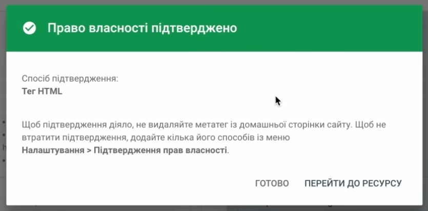 После этого перейти к ресурсу и все. Search console у нас создана. Далее вы можете ею пользоваться, можете не пользоваться. Это уже на ваше будет усмотрение. Но нам это нужно для того, чтобы очень легко подтвердить права на сайт