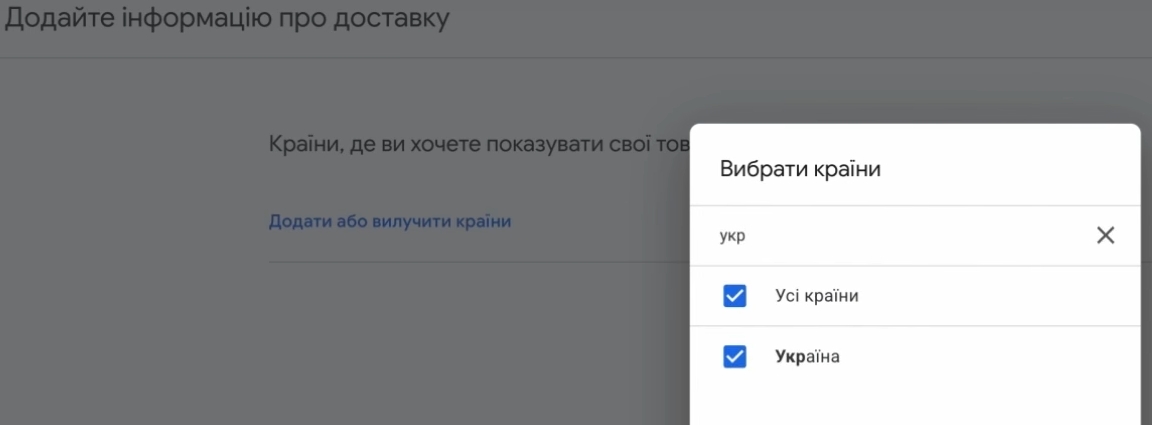 Добавить или удалить страны. Страна, в которой мы продаем. Выбираем Украину. «Продолжить». Название доставки вы вписываете любое, какое вы хотите.