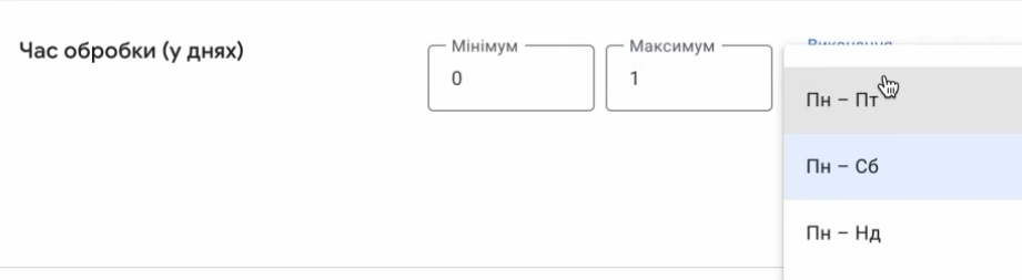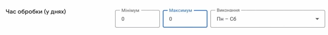 Обработка в днях — это то, сколько дней вы тратите на обработку заказов. У кого-то это буквально сутки, двое суток, у кого-то это растягивается на 5 дней. Поэтому вы отмечаете это так, как у вас есть в реальности. Например, если бы у меня обработка заказов длилась круглосуточно, тогда бы я здесь могла вписать 00:00.