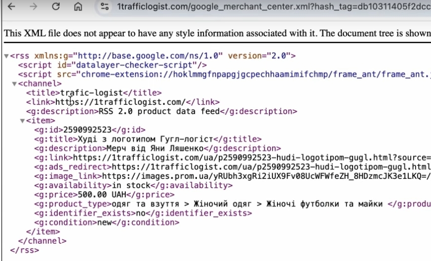 Еще рекомендую все-таки проверять ее, ввожу в браузер и смотрю отобразилась ли информация о моих товарах или нет.
