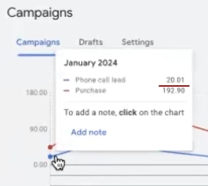 У нас лидов, 61 phone call, purchase 580,80. Здесь использовалась до этого четвертая аналитика, которую я не очень люблю в плане масштабирования или снижения цены за конверсию. Плюс вы должны понимать, что эти сотые, дроби (они на самом деле скрыты в рекламном аккаунте) очень трудно посчитать реальное количество конверсий, на самом деле. Мы, если хотим масштабировать аккаунт, мы должны оперировать какими-то цифрами. И не всегда эти цифры приводят к положительному какому-то фидбеку.
