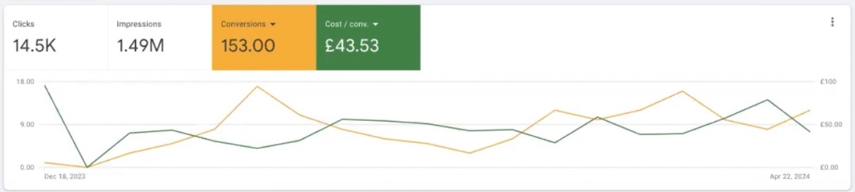 Еще одна сложность в подобных нишах однотипных. Нужно прям запариться над перестройкой структуры, чтобы 100 фунтов уменьшились как минимум до значения целевых KPI и не потерять в штуках наращивания конверсии. Выглядит как сформулировала сложно, также примерно и в управлении рекламными кампаниями сложно. Почему? Нет условно одной товарной позиции, которая бы сильно регулярно покупалась. Продажи распорошены по разным IDшникам.