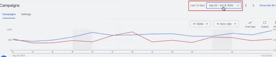 Здесь я показываю период, который немного длиннее, чем период, когда мы начали поддержку, наша поддержка началась 20-го числа. Я смотрю на CRM, это 28 августа, 27 или около того. Это примерно этот период времени. Я перезагружу страницу, чтобы вы могли убедиться, что цифры здесь не поддельные. Потому что здесь говорится, например, что мы меняем средний CPC. Они также говорят нам, что кто-то пишет, рисует или что-то еще происходит. Если мы переключимся на кампанию, цифры будут такими же.
