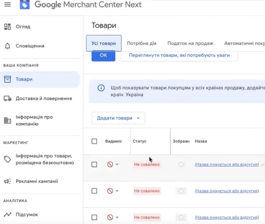 Теперь ждем полной проверки Мерчант центра, его модерации, чтобы уже дальше рассматривать какие изменения нужно вносить.