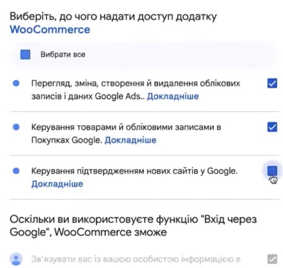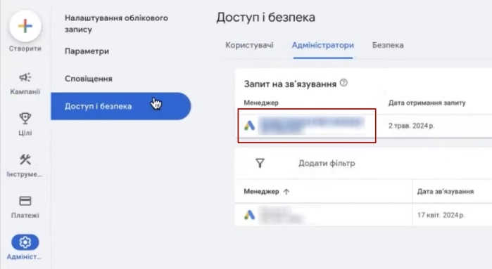 Непосредственно, в Google Ads можем проверить с какими сервисами связаны. Тут обязательно будет Woocommerce. Создался в разделе «Доступ и безопасность» в разделе «Администраторы» такой менеджер, условно, Google Listings & Ads. Желательно принять от него доступ, соответственно, что была связка, непосредственно, этих двух аккаунтов.