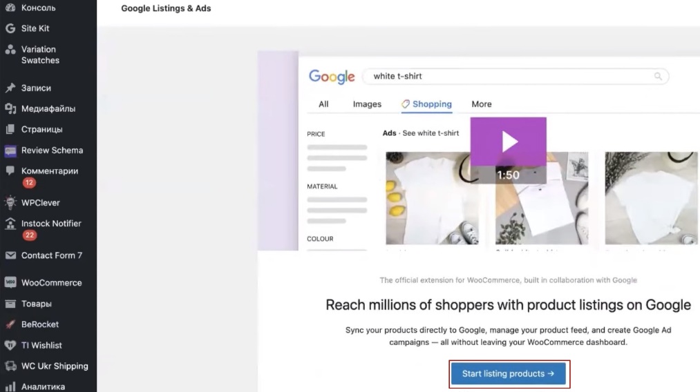 - Установка плагина Google Listings & Ads