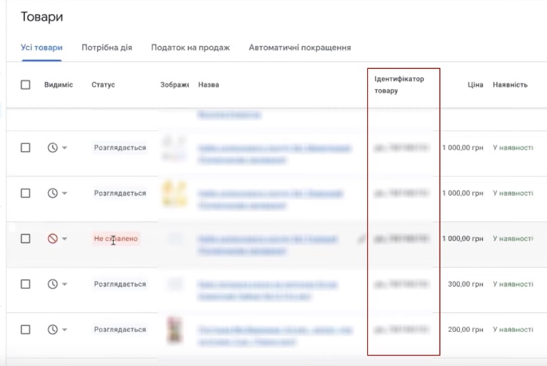 План такой: информация должна пройти полностью проверку модерации в рекламном аккаунте. Подгрузился, есть уже идентификатор товаров, который видно что уже что-то рассматривается, что-то написано как «не одобрено».