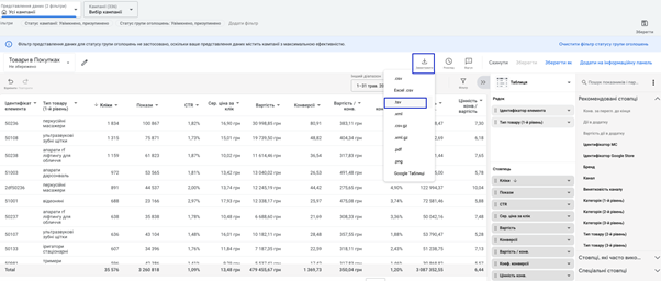 Інструкція вивантаження інформації про ваші товари з рекламного кабінету Google ads