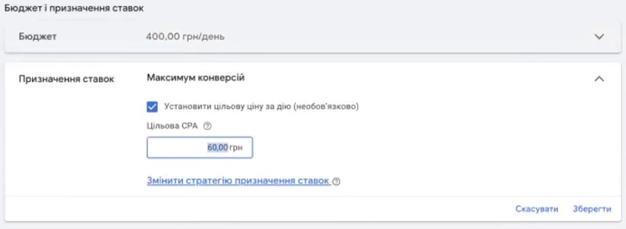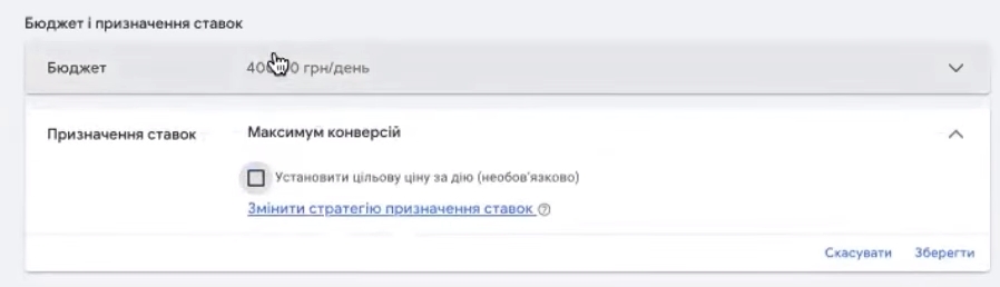 Бюджет запуску та стратегія «максимум конверсій»