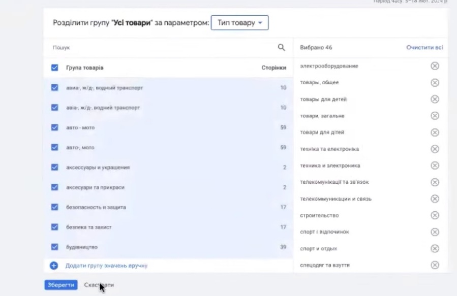 Підправити фід, передивіться ще раз Google product категорії, чи вони всі правильні, чи неправильні. 3000 товарів вам здаються дуже великою кількістю. Насправді це не досить велика кількість товарів. Передивіться тип товару, тому що він бере участь в таргетингах. Якщо у вас є якийсь одяг спеціалізований, там роба якась чи елементи цієї роби, виносите її окремо, щоб ви її контролювали. Бензинова плита, можливо ось по напрямкам розділити. Є окремо будівництво, є окремо сільське господарство, є там ще щось. Тому що той самий шуруповерт може купити Вася, який живе там в Києві, да, і Василь Петрович який буде купляти мотокультиватор. Ваша задача буде подивитися, поглянути, розділити, ну хочете на два перформанси розділить їх. Можете три зробити.