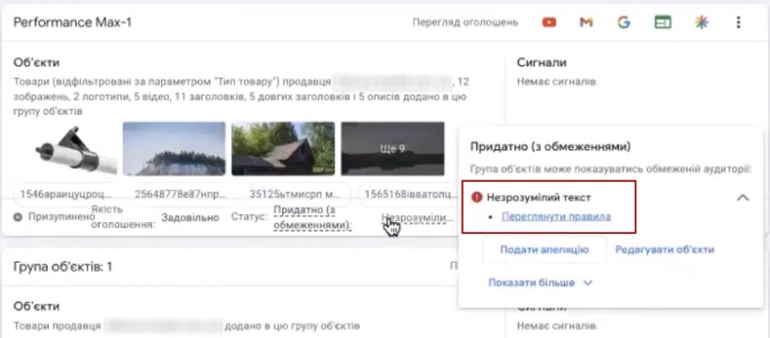 Ну і ще звичайно не робіть ось такої історії абракадаброю в групах. Бачите, навіть Google пише вам незрозумілий текст. Що ви хотіли? Я от тут призупиню, бо зараз покази у вас підуть. Бо якщо не пішли вже покази на цю історію краще без груп об’єктів, тоді запускатися і не паритися, якщо ви прям бачите, з цією абракадаброю не можете справитись.