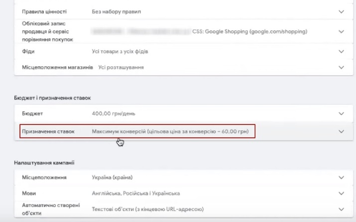 - Бюджет запуску та стратегія «максимум конверсій»