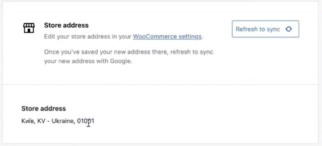 Адреса магазину. Уважно! Бажано, щоб у налаштуваннях адреси, саме в WooCommerce settings, було вказано правильну адресу, яка потрібна. Написана якась абракадабра, демонструю. Бажано, щоб адреса разом із зіп-кодом (поштовим індексом) повністю сходилася з тим, що на сайті відображено візуально. Це важливо!