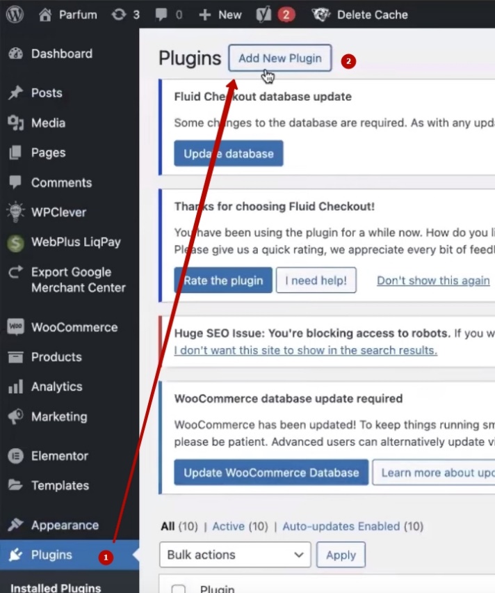 Як його можемо встановити на WordPress WooCommerce? Заходимо в “Плагіни” тут. Натискаємо “Add New Plugin”.