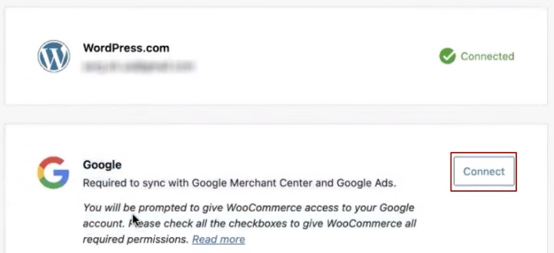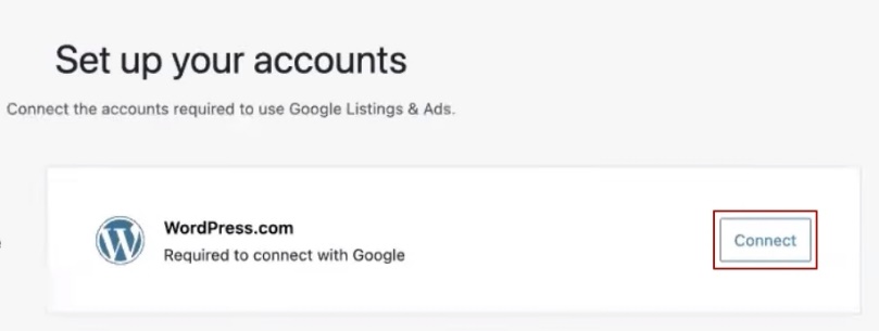 Натискаємо кнопочку “Start listing products”, йдемо далі. Буде кілька етапів налаштувань, нічого складного. Перше – потрібно налаштувати акаунт. Тут важливо почати з першого етапу, це нам потрібно приконнектити наш WordPress, відповідно, до цього плагіну.