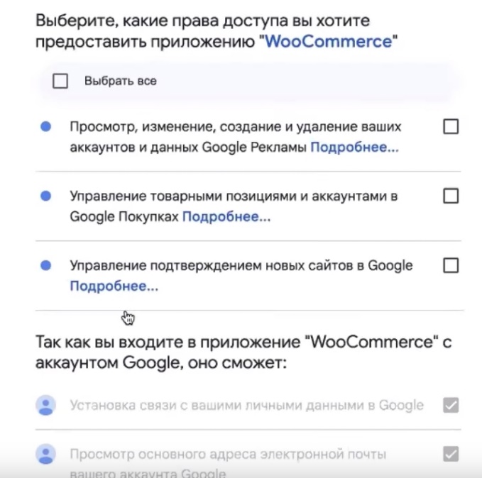 Рекомендую створити просто окремий е-мейл для цієї історії або вже від самого початку знати, під яким е-мелом заходитимете в Google Ads і в Merchant Center. Натискаю “Connect”, тут запропонують зайти у відповідний акаунт. Натискаю “Продовжити”, вибираю всі галочки, “Продовжити”. Йдемо зараз далі поетапно, трошки довго, але як є.