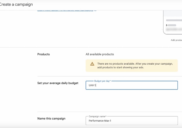 Створення нової кампанії в Мерчант центрі