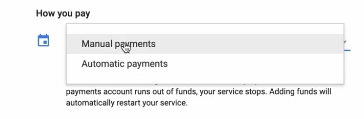 Наскільки я пам’ятаю, для Сполучених Штатів Америки недоступні ручні платежі, треба лише автоматичні обирати. Тому уважно при автоматичних платежах.