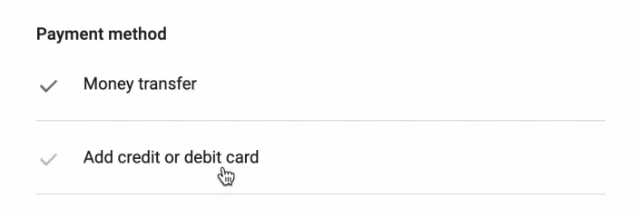 Платіжний метод у мене є переказ банківський або добавити кредитну або дебетову карточку.