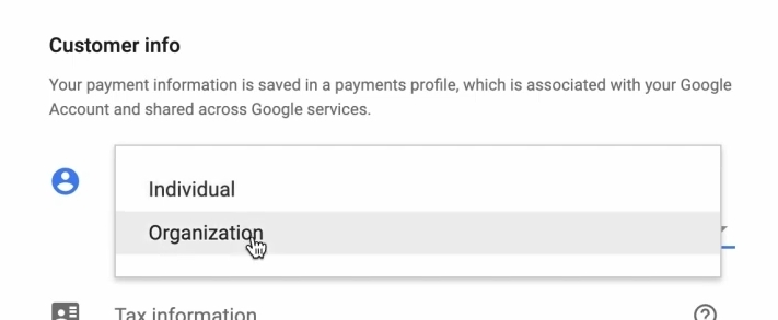 Також важливо звернути увагу на Customer info – відразу пропонує або індивідуально, або організацію завести. В чому між ними різниця?