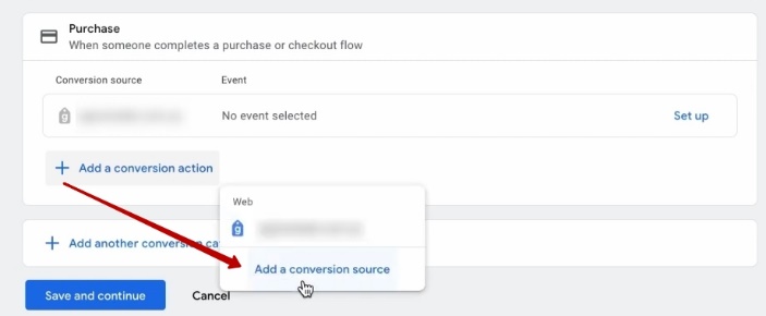 Добавляємо «conversion action» – «Add conversion action».