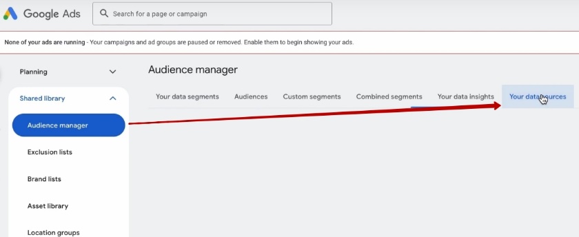 Заходимо в ці тулси, ідемо в «Менеджер аудиторії», нажимаємо «Наші джерела».
