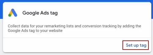 В нас є тут Google Ads tag. Нажимаємо «Налаштувати».