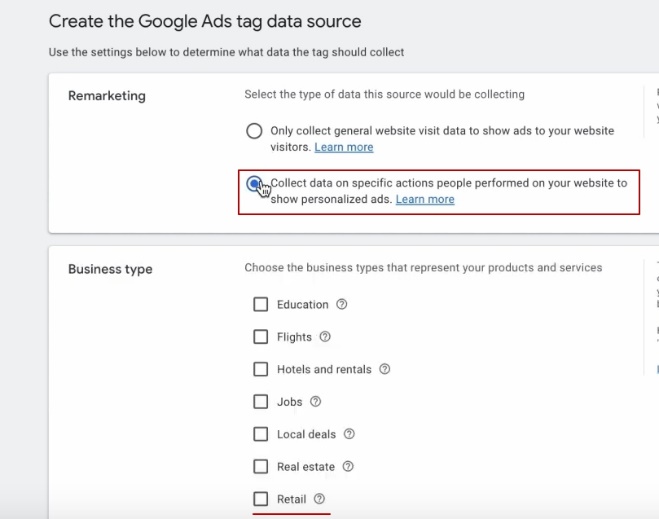 Після цього вибираємо «персоналізована реклама», обираємо, «Retail», тому що ми Retail.
