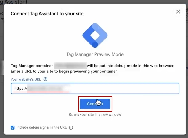Нажимаємо «Connect». Після цього у нас відкривається сайт. Обов’язково, дуже важливо, перевіряйте оцей блок, щоб у вас було написано, що Debug information for this page is viewable in the Tag assistant Windows, що типу він підключений, тому що інколи в Гугла він може підвисати, вам буде здаватися, що він не працює. Насправді він працює. Просто у Гугла бувають глюки.